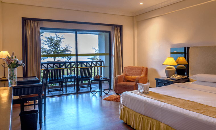 특히 오션 파노라마 디럭스룸은 1층부터 2층까지 끝없이 펼쳐진 남중국해를 향해 식물원을 마주하고 있습니다. 각 층의 모든 객실은 개방형 복도를 갖추고 있으며, 객실 내부에는 전용 발코니가 마련되어 있습니다. 은은하고 현대적인 흙색 톤으로 아름답게 장식된 객실은 리조트의 고급스러운 분위기를 더욱 돋보이게 합니다.