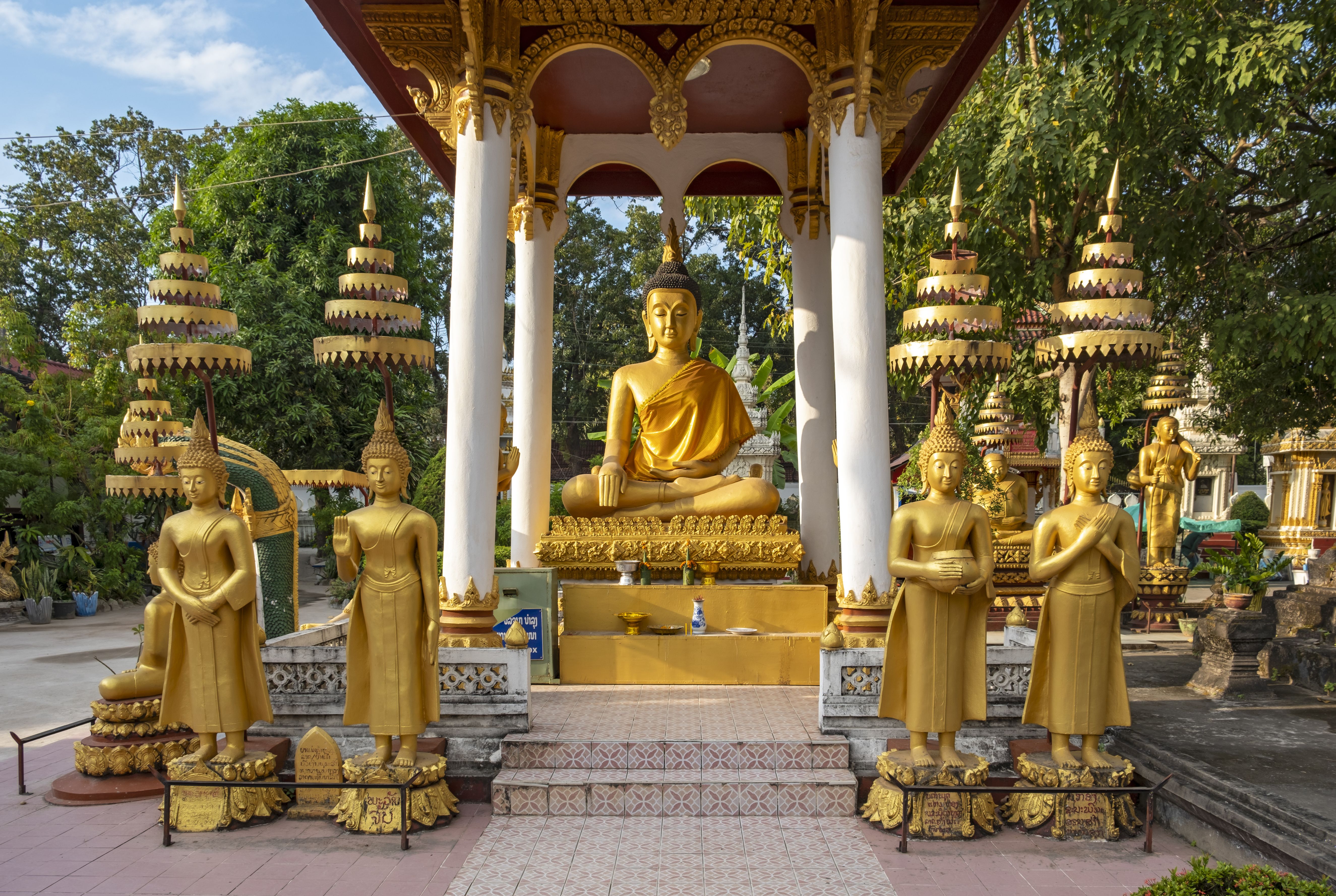 | - 파 탓루앙(That Luang Stupa): 라오스의 불교 정신을 상징하는 황금빛 불탑. 매년 11월에는 타탓루앙 축제가 열려 많은 불교 신자와 관광객이 모입니다. - 빠뚜사이(Patuxai): 프랑스 개선문을 본뜬 기념비로, 전망대에서 비엔티엔 시내를 한눈에 볼 수 있습니다. - 왓 씨 사켓(Wat Sisaket): 수천 개의 불상과 벽화가 보존된 사원. - 호파께우: 에메랄드 불상을 모시기위해만든 라오스 대표 불교사원 | |||