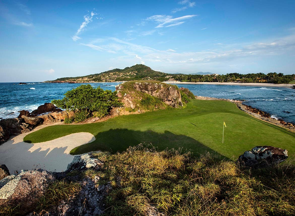 골퍼와 골프 잡지의 극찬을 받은 이 독특한 챔피언십 코스는 2006년과 2008년 콘데 나스트 트래블러 독자들에게 포시즌스 푼타 미타를 세계 1위 골프 리조트로 선정하는 데 영감을 주었습니다. "고래 꼬리"라는 별명을 가진 파시피코의 선택 가능한 파3 19번 홀은 194야드 길이로, 세계 유일의 자연 섬 그린으로, 잊지 못할 경험을 선사합니다! 코스 자체의 길이는 5,037야드에서 7,014야드 사이입니다.